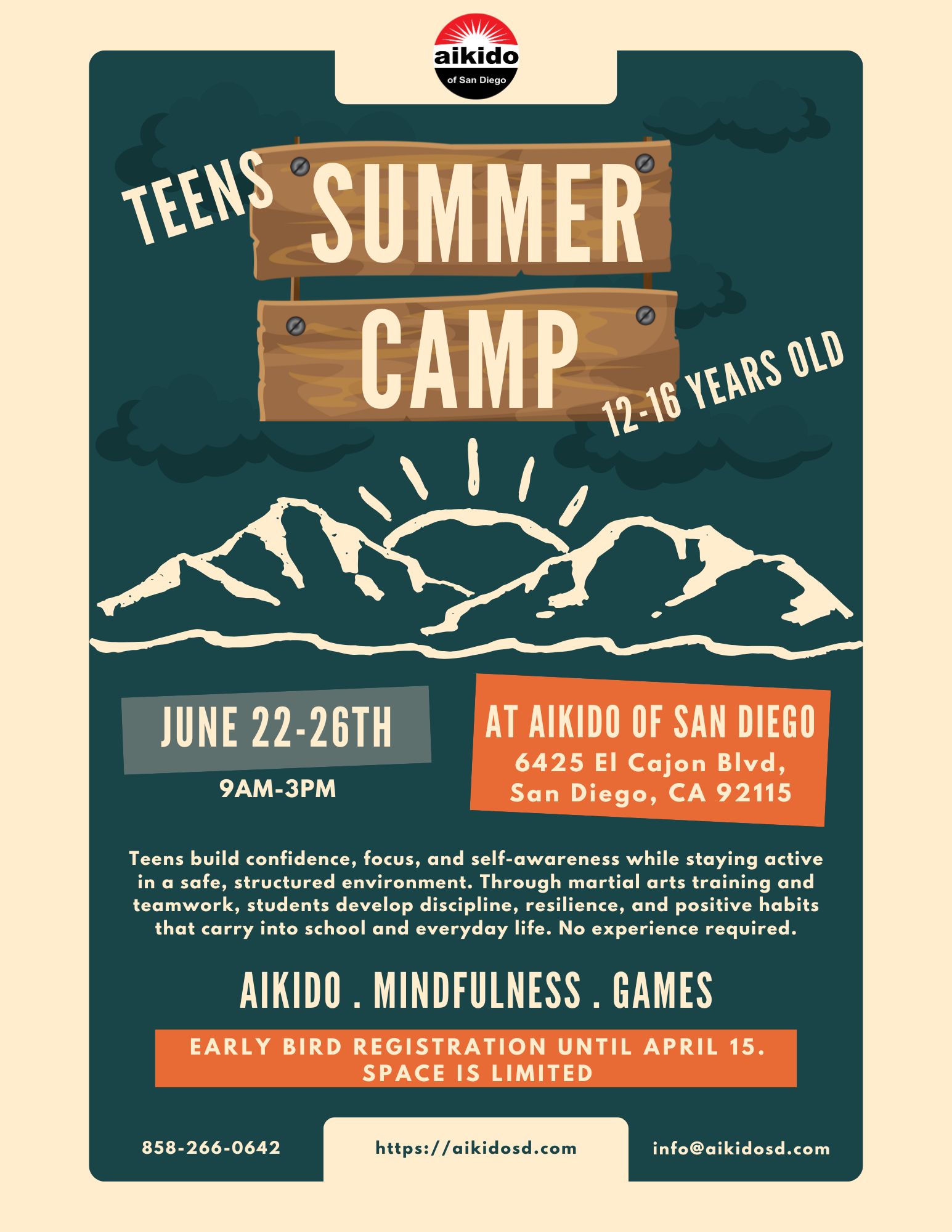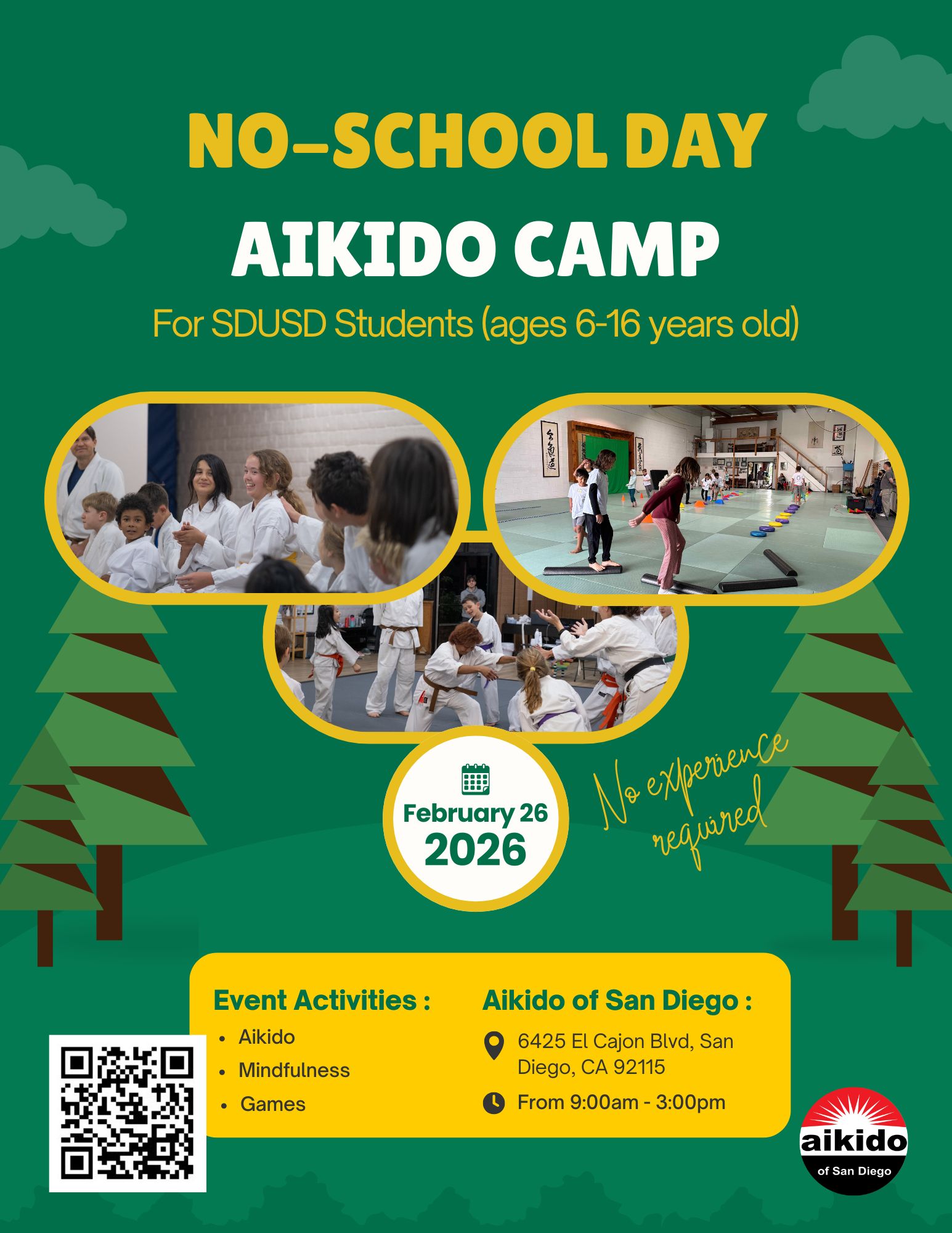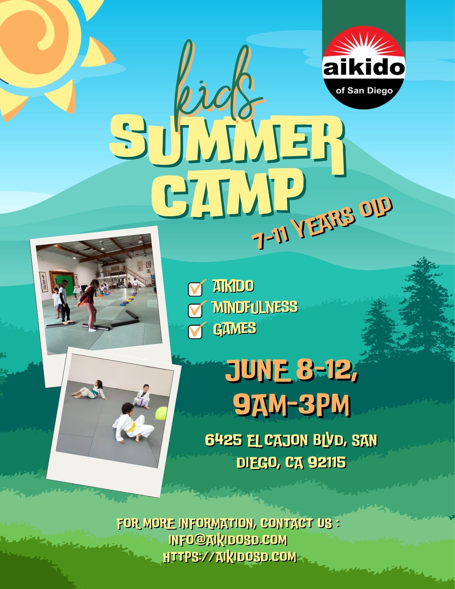 Welcome to AIKIDO OF SAN DIEGO Learn about aikido Book a free trial class Teens mentorship program No-School Aikido Day Camp Evolutionary Aikido Seminar Aikido Summer Camp for Kids Aikido Summer Camp for Teens Want to know what we are up to? Sign up for our quarterly mailing list! Font Awesome Icons First Name * Required field! Last Name * Required field! Email * Required field! Enter a valid email address! Referred By Invalid reCAPTCHA!